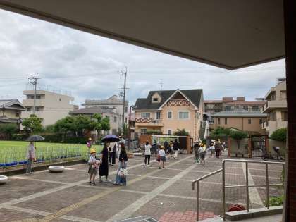 災害が起こった時に備えるため、引渡し訓練をしました。密を避けるため、子どもたちの集合場所などを工夫して、保護者に迎えに来ていただきました。