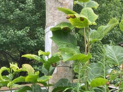 グリーンウォークでいろいろな虫を発見した人も。葉っぱの裏にはセミの抜け殻がいっぱい。