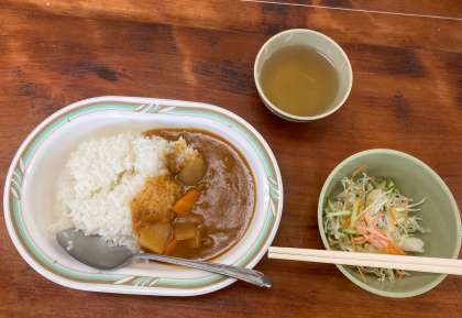 しっかり歩いて活動した後は、昼食の時間です。カレーはスパイシーでもりもり食べられました。