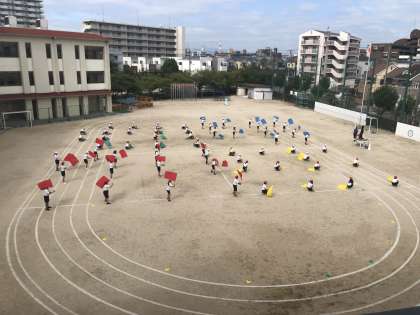 6年生はフラッグを使っての演技です。 完成がたのしみです♪