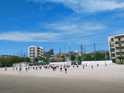 2年生が隊形移動の練習をしています。 広い運動場で位置を覚えてがんばろう☆
