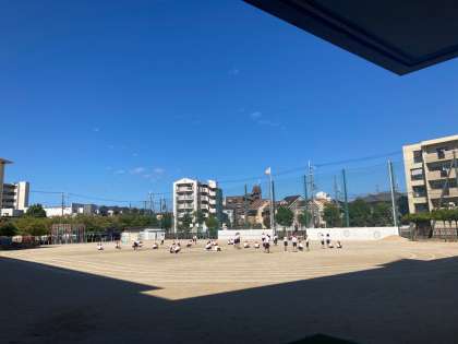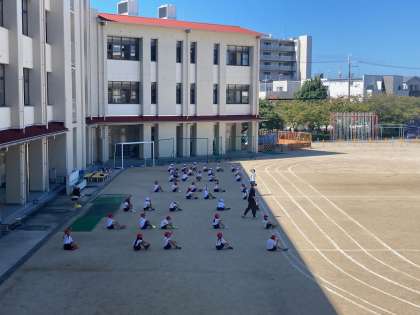 今日は、朝から晴天で、風は心地よく運動会の練習にも適した季節になってきました。うまく日陰を使って確認をしたり、時間を決めてお茶タイムを設けたりしながら、練習を進めています。