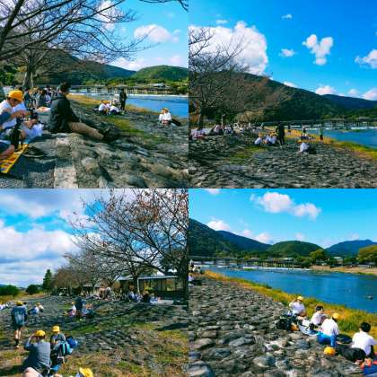 お弁当とお菓子を楽しんでいます♪ 晴れてきてポカポカ陽気です。