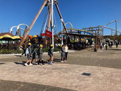 スペイン村では、ミールクーポンで昼食後、みんなでいろいろな乗り物に乗って楽しんでいます。