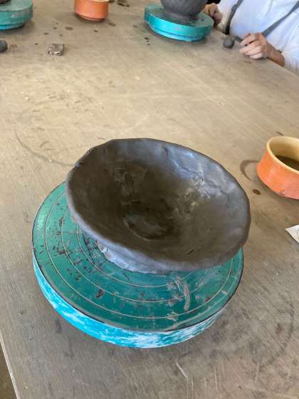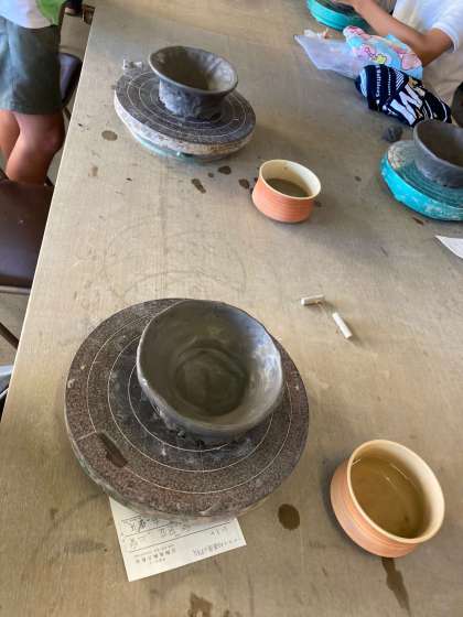 陶芸体験も終わりに近づいてきました。子どもたちの力作です。