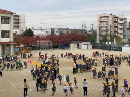 運動場で木曜日は児童集会を実施しています。縦割り班の活動がやっとできるようになって、高学年の子どもたちは張り切ってゲームを進めています。朝から子どもたちの歓声が上がり、笑顔で1日を始められます。