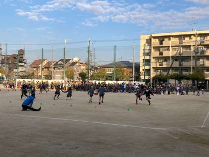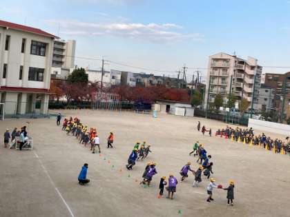 木曜日の朝の児童集会は、ボール運びリレーをしました。ペアになって新聞で挟んだボールを運ぶゲームです。違う学年の友だちとの交流を通して、たくさんの友達ができてきています。