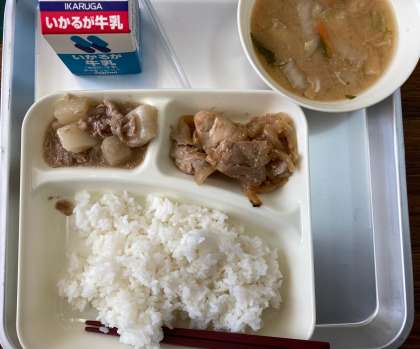 今日の給食の献立は、鶏肉の甘辛焼き、田辺だいこん葉の味噌汁、田辺だいこんの煮物、ご飯、牛乳でした。鶏肉の甘辛焼きは、玉ねぎと絡めてあって、鶏肉の旨味が味わえました。田辺だいこんは、大阪市内で100年以上前から作られています。現在9種類ある「大阪市なにわの伝統野菜」の一つです。田辺だいこんは、白い根の部分の先が少し膨らんだ形をしていて、丸みがあります。田辺だいこん葉が入った味噌汁は他の野菜とも相性が良く、味噌汁の味を引き立たせていました。田辺だいこんの煮物には、独特の苦味と旨味が感じられました。