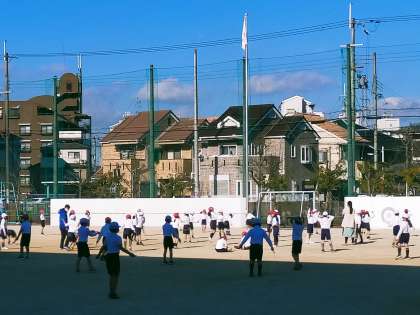 寒空の下、2年生が元気いっぱい体育をしています。なわとび上手にとべたかな?