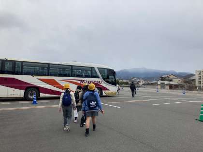 時間通りにバスに乗り込みました。今から学校に向かいます。
