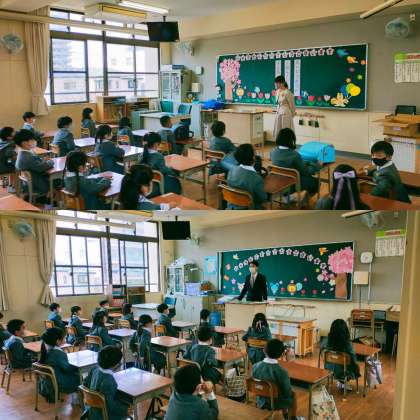 入学式を終え、担任の先生と新しい教室で学級活動です。