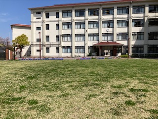 大道南小学校には正門を入ると目の前に芝生広場が広がっています。低学年の子どもたちはよくこの芝生広場で過ごしています。きっと子どもたちも気持ちが安らぐのだと思います。