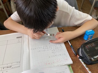 3年生の子どもたちがたねの観察をしていました。マリーゴールドとホウセンカのたねが先生から配られました。