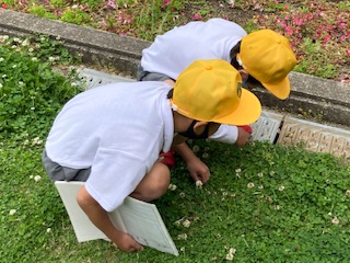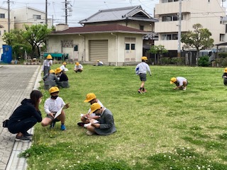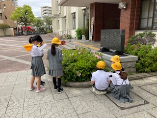 4年生の子どもたちがノートを片手に春の自然をさがしに外に出てきました。何か見つかりましたか?先生や友だちと仲良くお話ししているようすがとても微笑ましかったです。
