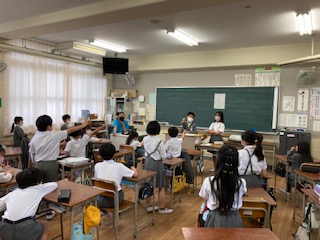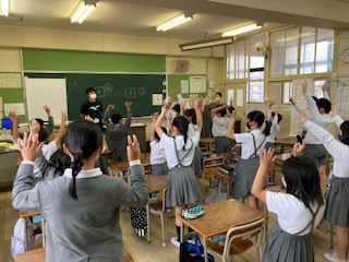 キッズファミリーの班編成を行いました。キッズファミリーとは、たてわり班のことで大道南ではそう呼んでいます。1〜6年生が混ざって年間を通して集会などの場面で活動していきます。今日は班編成のあと、余った時間でクイズやゲームをそれぞれの班で考えて遊びました。