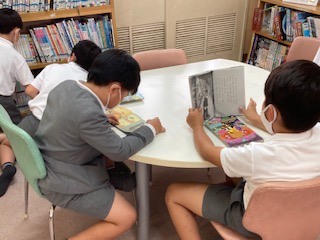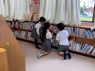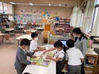 3年生の子どもたちが図書室で本を読んでいました。係の子がバーコードリーダーを使って本の貸出や返却の仕事をしていました。自分たちでできるんですね。とてもお利口さんですね。