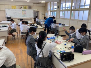 なみぬい かえしぬい かがりぬい ボタンつけ・・・6年生の子どもたちが針と糸を使って裁縫をしていました。みんなやっぱり実習は楽しいですね。集中力も高まります。