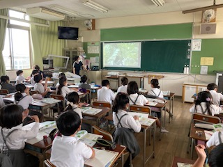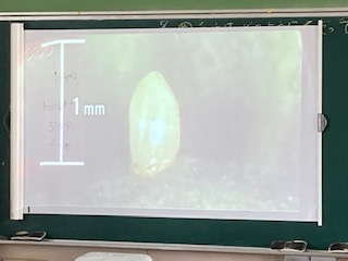 3年生の子どもたちが映像で、モンシロチョウがたまごをうんで、よう虫になるまでを見ていました。先生がたまごは1mmなんだよと言うと、みんな、小さ過ぎると驚いていました。今度、学習園で探してみましょうね。