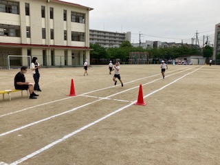 6年生が朝から元気に走っています。50m走です。さすが6年生ですね、走りに力強さが感じられます。走り終わったあとは、やっぱり記録が、気になるようです。すぐに先生のところに行って、