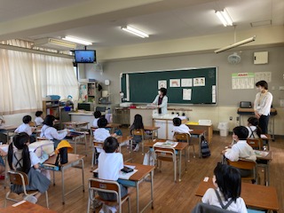 児童集会を放送で行っています。今日はクイズです。集会委員会の子どもたちが考えた大道南小学校に関する問題をクイズ形式で出していきます。はっきりとした大きな声でとても楽しくできました。1年生の教室をのぞいてみると、2ばん!2ばん!
