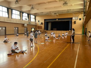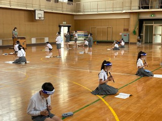 講堂からオルガンとリコーダーの音色が聞こえてきました。5年生の子どもたちが音楽の授業です。体育などで講堂を使用していない時間を活用して、感染対策を講じながらリコーダーの練習をしていました。一人一人の間隔を空けてフェイスシールドもつけています。それでも子どもたちは気持ちよく吹けるので楽しそうです。なんと先生はオルガンをわざわざ毎回4階の音楽室から運んできています。本当に細かな配慮、ありがとうございます♪