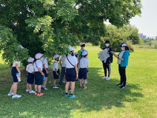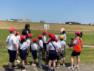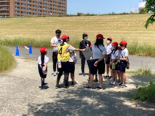 チェックポイントがたくさんあるので楽しいです。6年生の子どもたちがしっかりとリーダーシップを発揮して、グループのみんなをリードしています。やさしく声かけをして、低学年の子たちもうれしそうです。