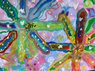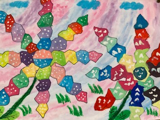 4年生の教室の後ろに色あざやかな絵が掲示してありました。子どもたちが時間をかけて、ていねい描いているようすが目に浮かびます。感心しました。