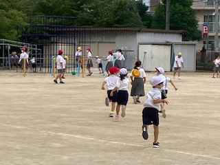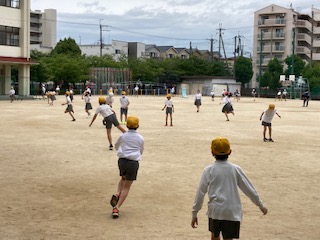 今日は朝から少し雨模様でしたが、雨はやんで曇り空。久々にすずしさを感じています。休み時間には、たくさんの子どもたちが運動場に出てきました。明るく元気な声が聞こえてきます。