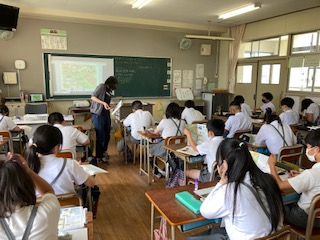 今から約2300年前の遺跡から米づくりが行われていたことがわかります。西日本を中心に米づくりが広がっていました。弥生時代です。6年生が歴史の学習です。教科書に載っている想像図をみんなで見ながら、気づいたことを次々に発表していました。これから歴史学習はどんどんおもしろくなっていきます。