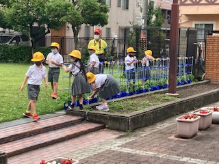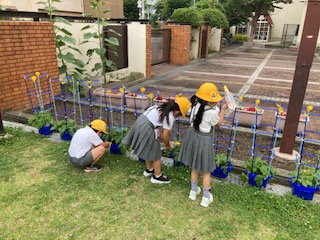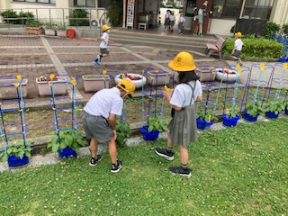 子どもたちも自分の育てているアサガオが大きくなっていくのを楽しみにしています。