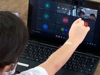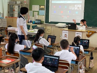 先生の説明をしっかりと聞いて、子どもたちはタブレットでの通信の仕方について楽しみながら練習していきました。