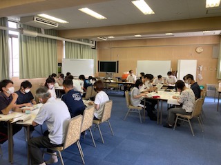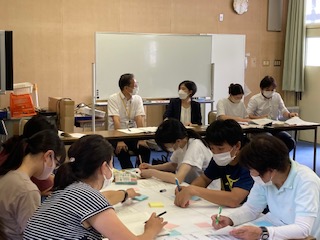 今日の研究授業を振り返って、討議会を行っています。子どもたちにわかりやすく、より理解が深まるようにするためにはどうしたらいいか、グループで話し合ったり、それぞれよかった点や改善点を発表し合ったりすることで授業力の向上を目指しています。