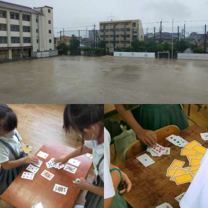 さて、雨の日の休み時間は、外に遊びにはいけませんが、パソコンでタイピングする子もいれば、トランプやウノなどのカードゲームで遊んでいる子、本を読んでいる子など、さまざまな楽しみ方で過ごしています。