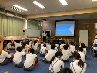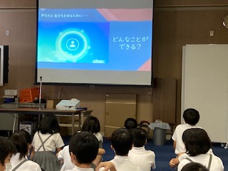 ゲストティーチャーに来ていただき、6年生の子どもたちに情報モラル教育の授業を行いました。情報社会の進展はメリットもありますが、SNS等の普及による犯罪被害の危険性をはじめ、多くの問題もあります。具体的な事例をあげながら、子どもたちにわかりやすく教えていただきました。個人情報を流さない、自分がされて嫌なことは決してやらない、知らない人と会わない、などの基本的な事柄を中心に学習しました。ご家族でも今一度、スマートフォンやオンラインゲーム、タブレット等の使い方についてご確認をお願いします。