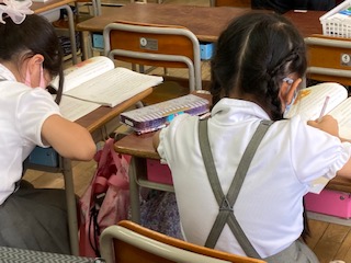 3年生の子どもたちが国語の授業で[サーカスのライオン]という物語を読みました。はじめの感想を発表しています。どんなところが印象に残りましたか?気になったところや不思議に思ったところはありましたか?先生が質問します。子どもたちはノートに書いて、それを友だち同士で見せ合ったりしました。書いてある内容をおおまかに把握することが大切だと思いました。