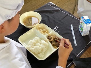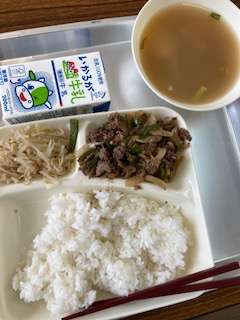 今日の給食のメニューは、プルコギ、トック、もやしの甘酢和え、牛乳、ごはん、でした。プルコギは韓国・朝鮮の焼き肉のことでコチジャンを使って、少し甘辛い味つけにしています。ごはんにぴったりです。トックも韓国・朝鮮の料理でおもちと野菜を使ったスープです。[トッ]はもち、[クッ]は汁という意味だそうです。もやしの甘酢和えはゆでたもやしに砂糖、塩、米酢、しょうゆで作ったタレをかけて和えています。