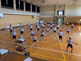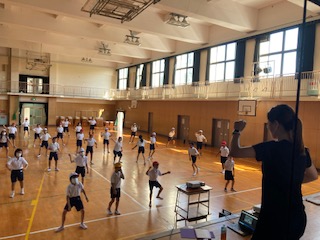 4年生の子どもたちが運動会に向けて、踊りの練習を始めました。先週に動画を見せてもらって難しそうと感じた[みかぐら]という踊りです。先生の元気な声が体育館に響きます。