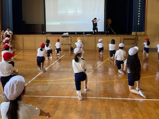 子どもたちも始まったばかりなので動きがすぐに飲み込めず、まわりをキョロキョロ、あたふたあたふた、オロオロ。でも上手くいかなくても失敗しても、友だちと目が合うと自然と笑みがこぼれてしまいます。なんか踊るのって楽しいね。