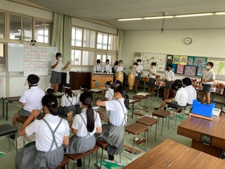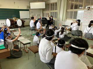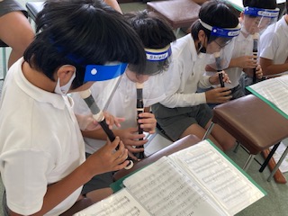 6年生の子どもたちがリコーダーで[メヌエット]という曲を吹いていました。なかなかきれいな音を出すことが難しいということなのですが、とても上手に吹いているように聞こえました。合奏は[ラバースコンチェルト]です。指揮者の指揮棒をよく見ながらタイミングよく演奏が始まります。指揮者の子は進んで立候補したようです。