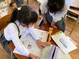 教えてあげる方も教えてもらう方も、うれしそうにしています。