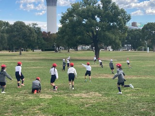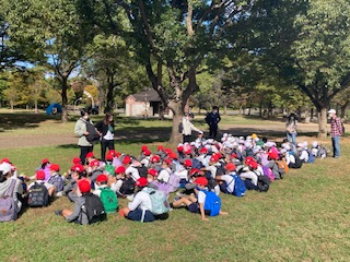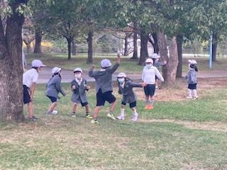 お弁当の後は、またみんなでいっぱい遊びました。思いっきり走り回って、たくさん笑いました。ちょっと疲れたね。でもみんな満足しました。やっぱり外に出かけるっていいですね。ほんとにいい天気でよかったです。あーっ!先生の集合の合図です。今から学校に向かって帰ります。帰ったら楽しかったこと、お家の人たちに話そうね。