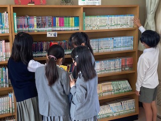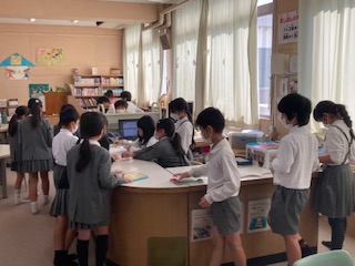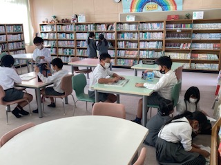 3年生の子どもたちが図書室を利用していました。いつも朝会などで、本は頭の栄養ですと言っています。本を読むと知識を豊富にすることができます。たくさんの言葉やその意味を知ったり使ったり、想像する力が身についたりします。他の学習にもとても役立ちます。ICTが進む教育の世界ですが、やっぱり子どもたちには進んで本に触れる生活を送ってほしいなと思います。