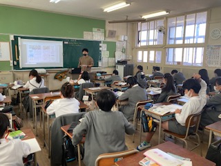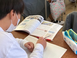 5年生の子どもたちが社会の授業で、工業の自動車工場について学習していました。自動車本体を作る組み立て工場と組み立て工場から注文を受けて部品を作る関連工場があります。自動車を作るのにどんな部品がいるのかな。いくつくらい必要なのかな。どこで作られるのかな。先生の質問に子どもたちは教科書などで調べて積極的に答えていました。ノートも頑張っています。