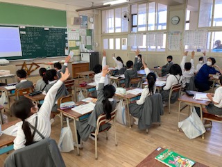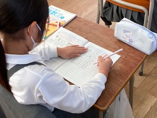 九九の学習も7のだんまできました。7のだんはちょっと難しそうです。大丈夫かな。先生が7のだんの九九を使った問題を出してくれました。勢いよく手があがります。子どもたちは答えなくて仕方がない感じです。先生に当ててもらえなかった子は、えーっ!と叫びます。先生、次こそは絶対当ててよね。
