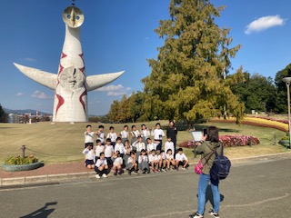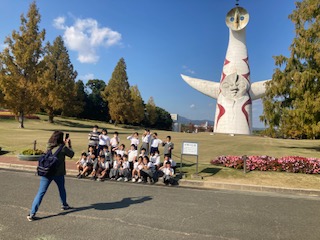 太陽の塔の前で記念写真をとりました。