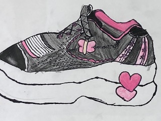 3年生の教室に子どもたちが描いた運動ぐつの絵が掲示してありました。一本一本の線をよく見て、この線はどこから始まって、どこにつづいているのかな。線描の練習です。子どもたちが集中して描いている姿が目に浮かんできます。