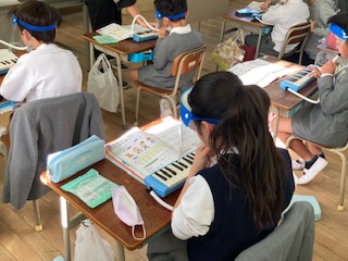 山のポルカという曲です。2年生の教室から、鍵盤ハーモニカを吹いている音が聞こえてきました。リズムにのって、子どもたちも楽しそうです。教室が明るくなりますね。