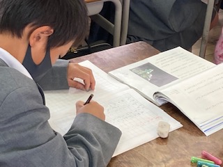 3年生の子どもたちが国語の学習をしています。今はモチモチの木です。登場人物の豆太について考えていました。豆太はどんな性格なんだろう?物語を読んでいくと、豆太の様子について記述してある部分がいくつかあります。でも今日は見つけるだけではありません。今日はそれらをまとめて文章にするというのが目標です。まとめる力、そしてそれを表現する力はとても大切です。これからしっかりと身につけていってほしいと思います。