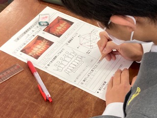 歯科衛生士さんに来ていただき、6年生の子どもたちに[歯と口の健康教室]を行いました。2種類の歯ぐきの写真を見て比べたり、自分の歯の健康度チェックをしたりしました。最後には、ミルクボーイの歯みがき推奨動画も見て、生活習慣や歯みがきについて、これから実行しようと思うことなどを考えて発表していました。いつまでも健康な歯でいたいものですね。