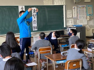 6年生の子どもたちにとって、小学校生活最後の3学期が始まりました。3か月後には中学生です。始業式では残り少ない日々を一日一日大切に過ごしてほしいと話したところです。今日は気持ちも新たに、書き初め[希望の朝]です。長半紙に書く機会は年に一回くらいしかないので、いつもより緊張します。枚数も限られているので尚更です。さあ深呼吸して。希望の朝を迎えましょう。